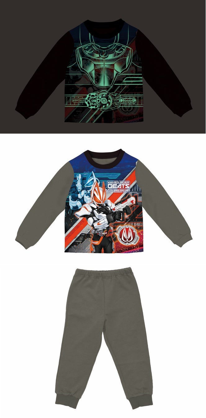 蓄光プリントで「仮面ライダーギーツ」のスーツや「キュアプレシャス」のコスチュームをデザインしており、暗闇で変身できる仕様となっております。