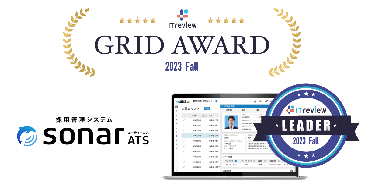 採用管理システム「sonar ATS」、 ITreview Grid Award 2023 Fallで「Leader」を受賞