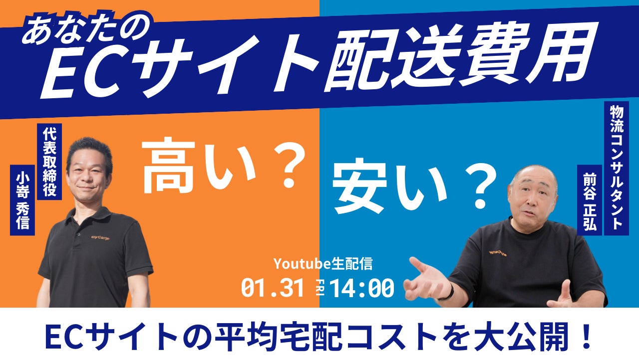 ラストマイル物流に特化した物流ソリューション事業を展開する株式会社エニキャリ(以下エニキャリ)は、「あなたのECサイト配送費用 高い?安い?ECサイトの平均宅配コストを大公開!」と題して、1月31日(金)14時より、YouTubeでライブ配信を行うことをお知らせします。