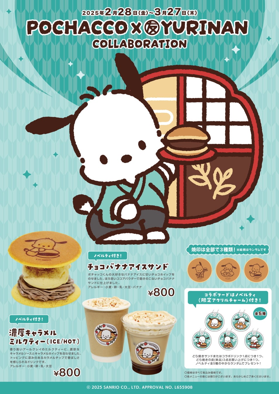 YURINAN では、2月28日(金)から「ポチャッコ」とコラボしたどら焼きサンドやドリンク、グッズを発売いたします。