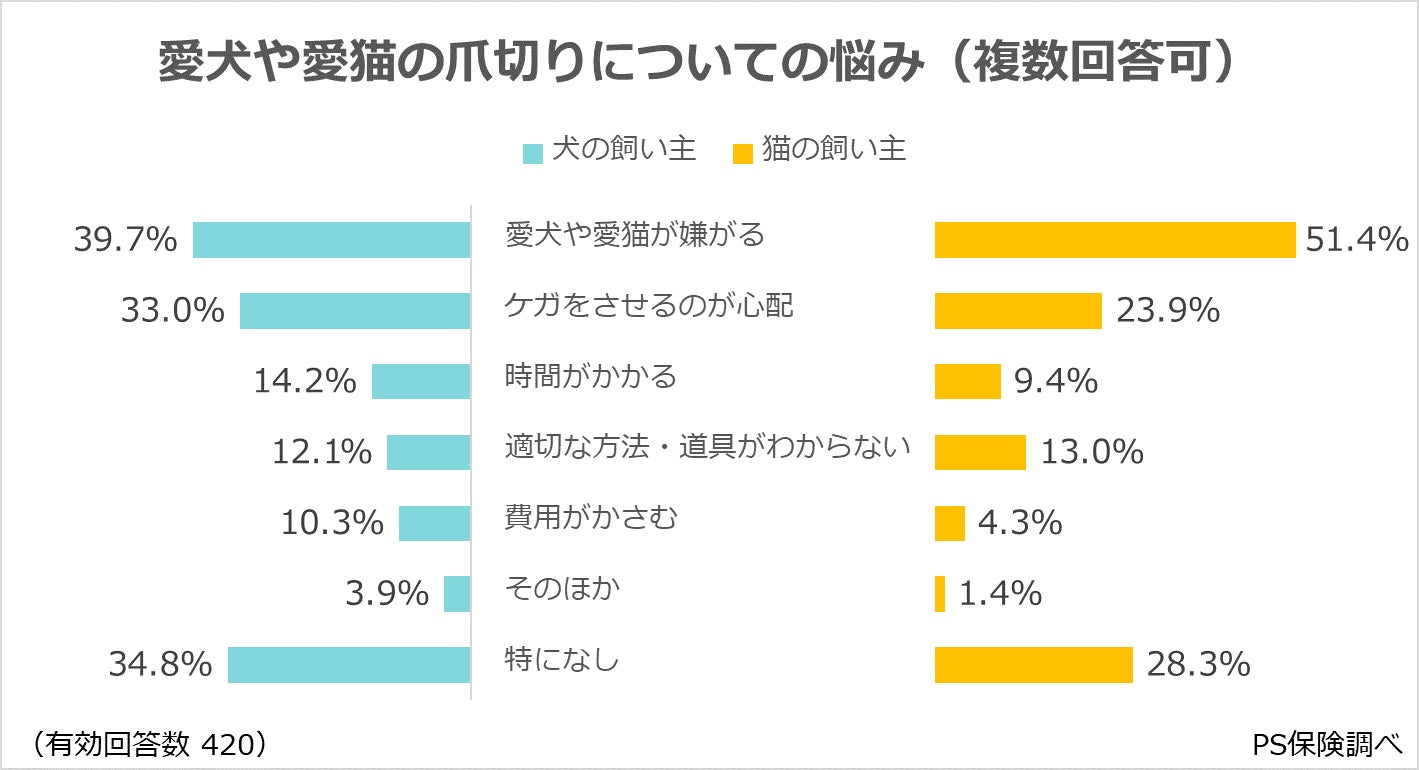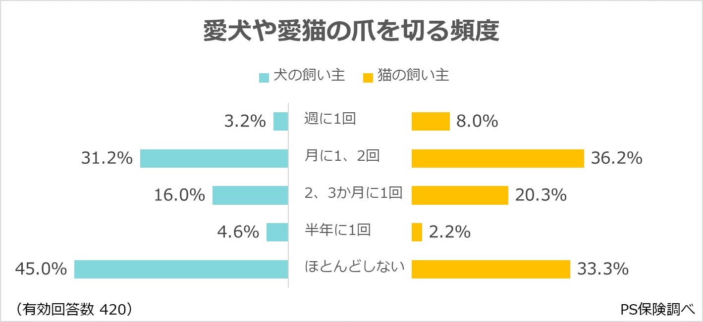 爪切りの頻度、愛犬と愛猫で大きな違い。その背景と飼い主の意識とは?:ペット保険「PS保険」調べ