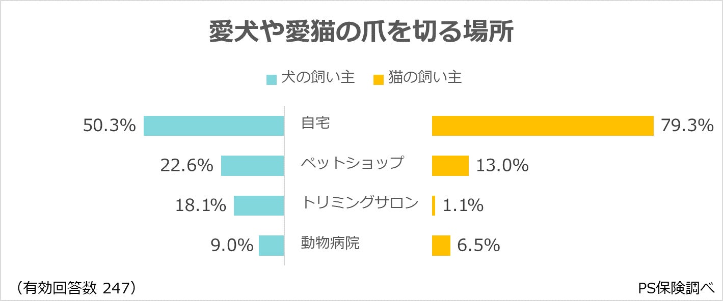 愛犬や愛猫の爪を切る場所について、飼い主に伺いました。