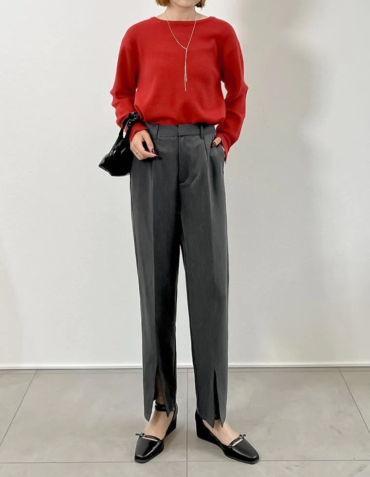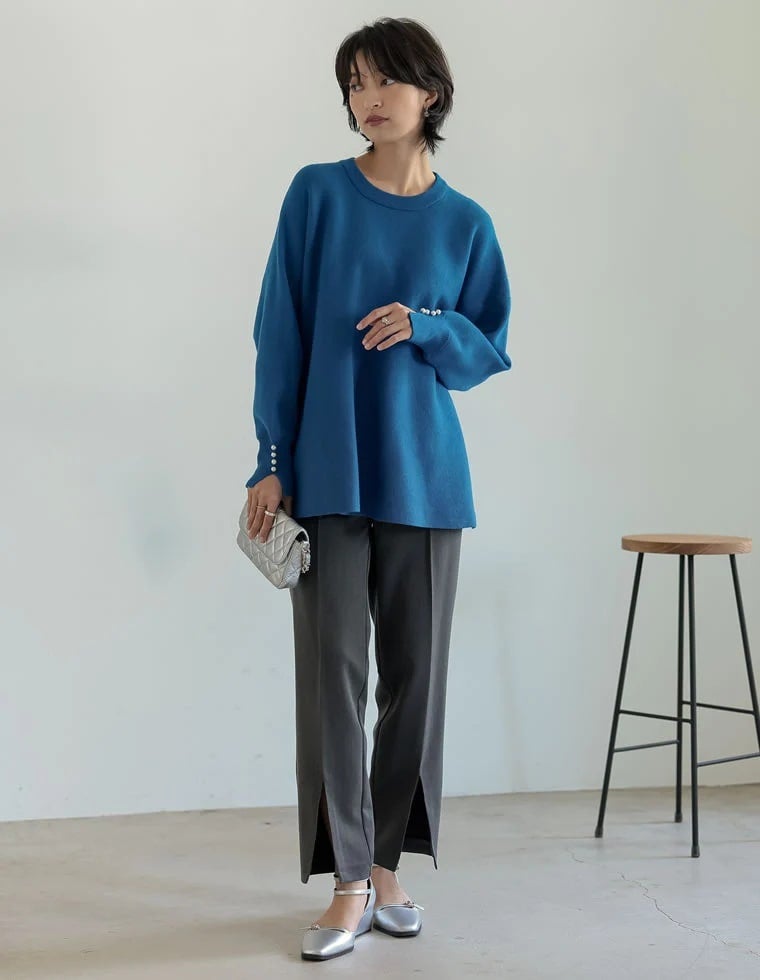 【グレー×カラーニット】どんなカラーとも馴染む名品のボトムをチョイス