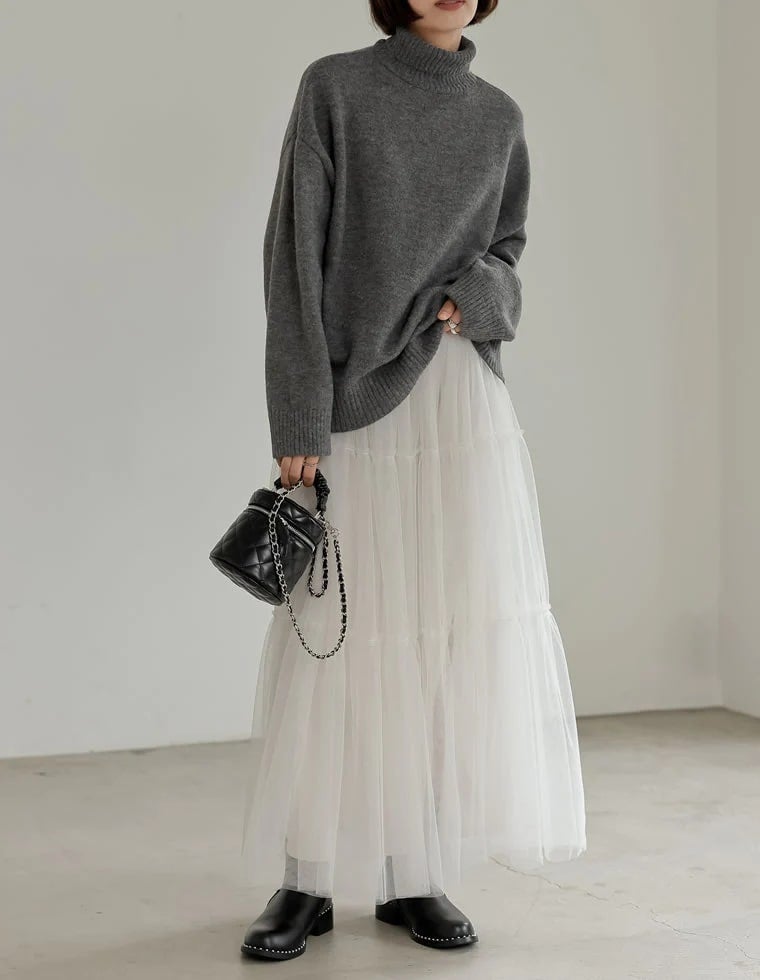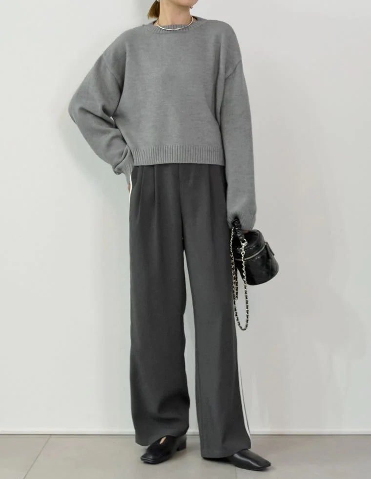 グレーのワントーンは、オールブラックよりも柔らかく、モード感もあるからさりげなくお洒落見えを叶えます。