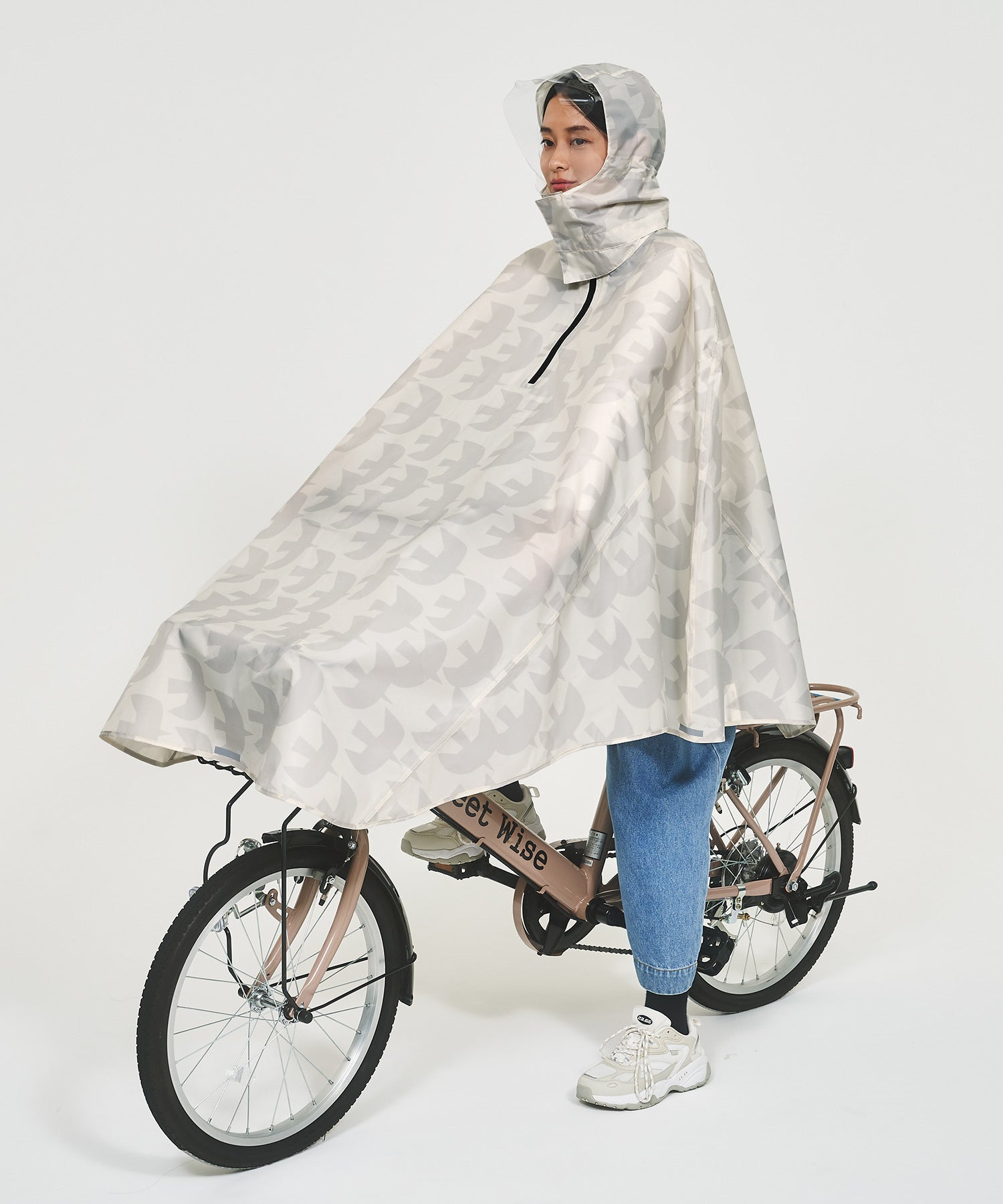 毎日の自転車通学&通勤、お買い物など、様々なシーンで活躍する「チャリーポンポン」。ポンチョをすっぽりと被り、フロント部分を自転車の前かごにバサッと被せることで自分もカゴに入れた荷物も濡れません。また特許を取得した首の動きにあわせて左右に動く特殊仕様のフードと透明のツバにより、左右の視野をしっかりと確保。Wpc.を代表する7種類のテキスタイルデザインで雨の日も楽しく!