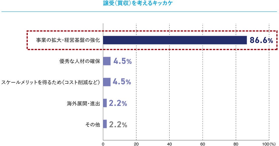 ■譲受を考えるきっかけの8割以上は「事業の拡大・経営基盤の強化」!