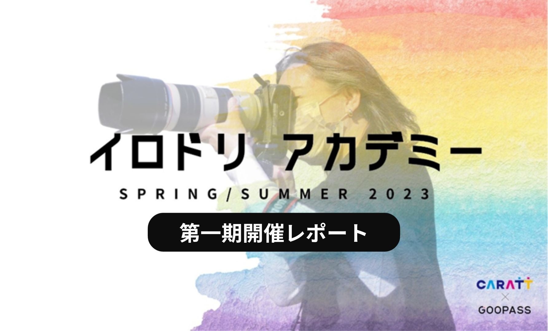 全国でフォトスタジオを運営する「キャラット」と、こころに残るトキのプラットフォーム「GOOPASS」が運営するフォトクリエイター支援プログラムです。キャラットが大事にする『人生を彩るコミュニケーション』という思想と、GOOPASSが掲げるPurpose『人生を彩ろう』の事業目的や想いの共通点から、「イロドリアカデミー」と名付け2023年4月に開講しました。