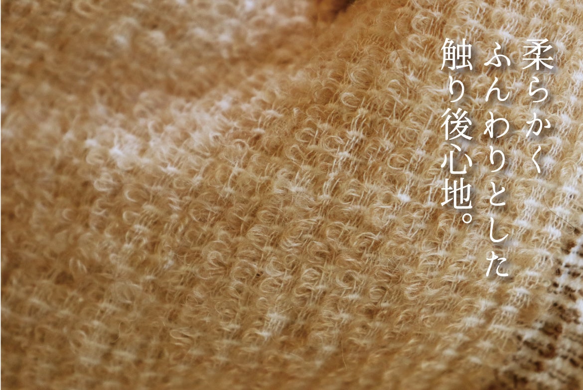 まるでニットのような素材感ですが、ベビーアルパカを使用することで動物繊維なのにチクチクしにくくやわらかい。