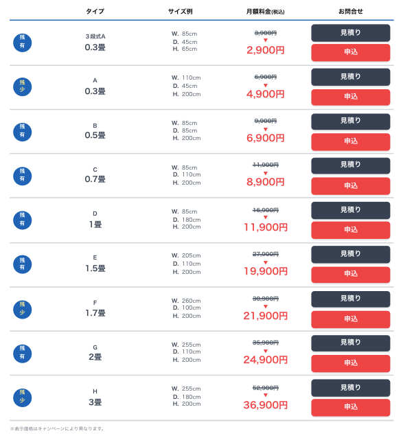 荷物以上に大きな部屋を借りてしまうことや、狭すぎて荷物が入らなかったなんていうトラブルを回避できます。