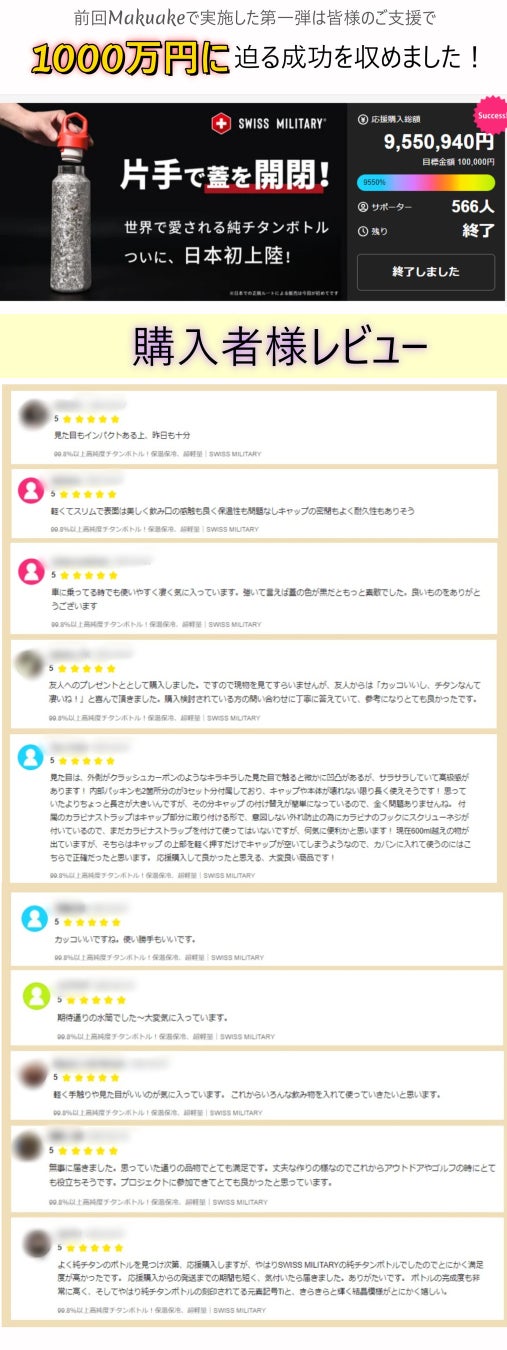 第二弾のSWISS MILITARY高純度チタンボトルは本日より販売開始いたしました!https://www.makuake.com/project/swiss_military_bottle_2/