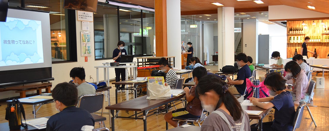 微生物を利用したものづくりの現場である一ノ蔵本社蔵を会場に、カリキュラムには酵母やコウジカビなどの醸造発酵に関する微生物の実験、微生物の基本的な性質を学ぶなど、子どもたちが楽しみながら「ミクロの世界」を体験できる内容となっている。