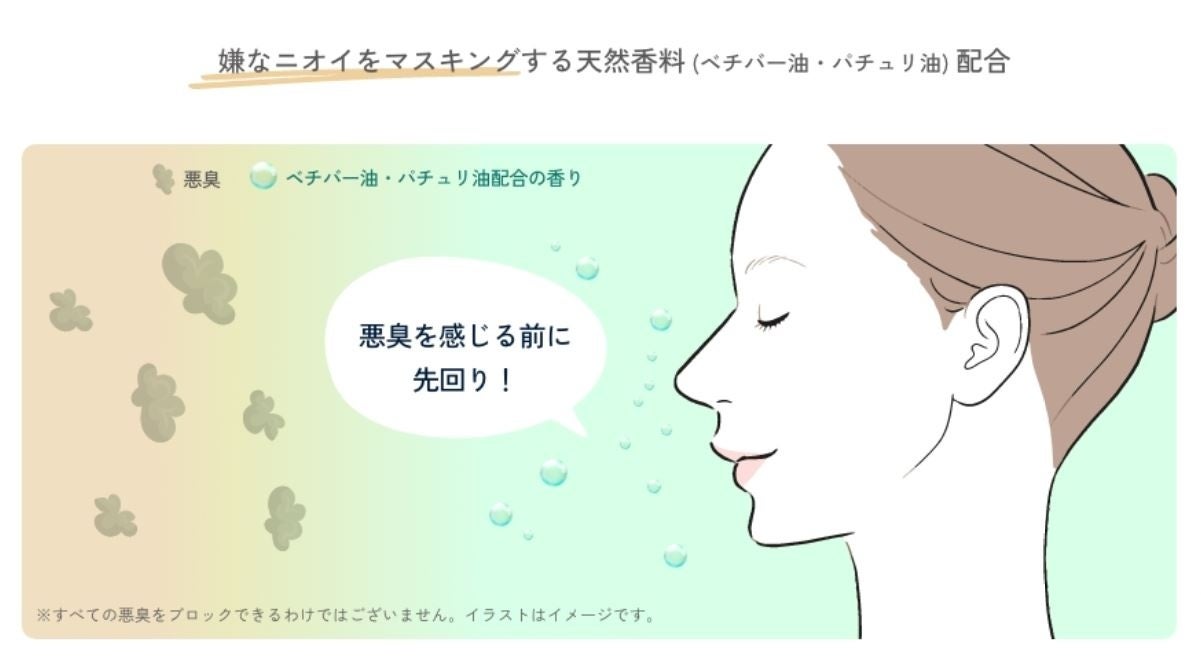 【嫌なニオイをマスキングする天然香料(ベチバー油・パチュリ油)配合】