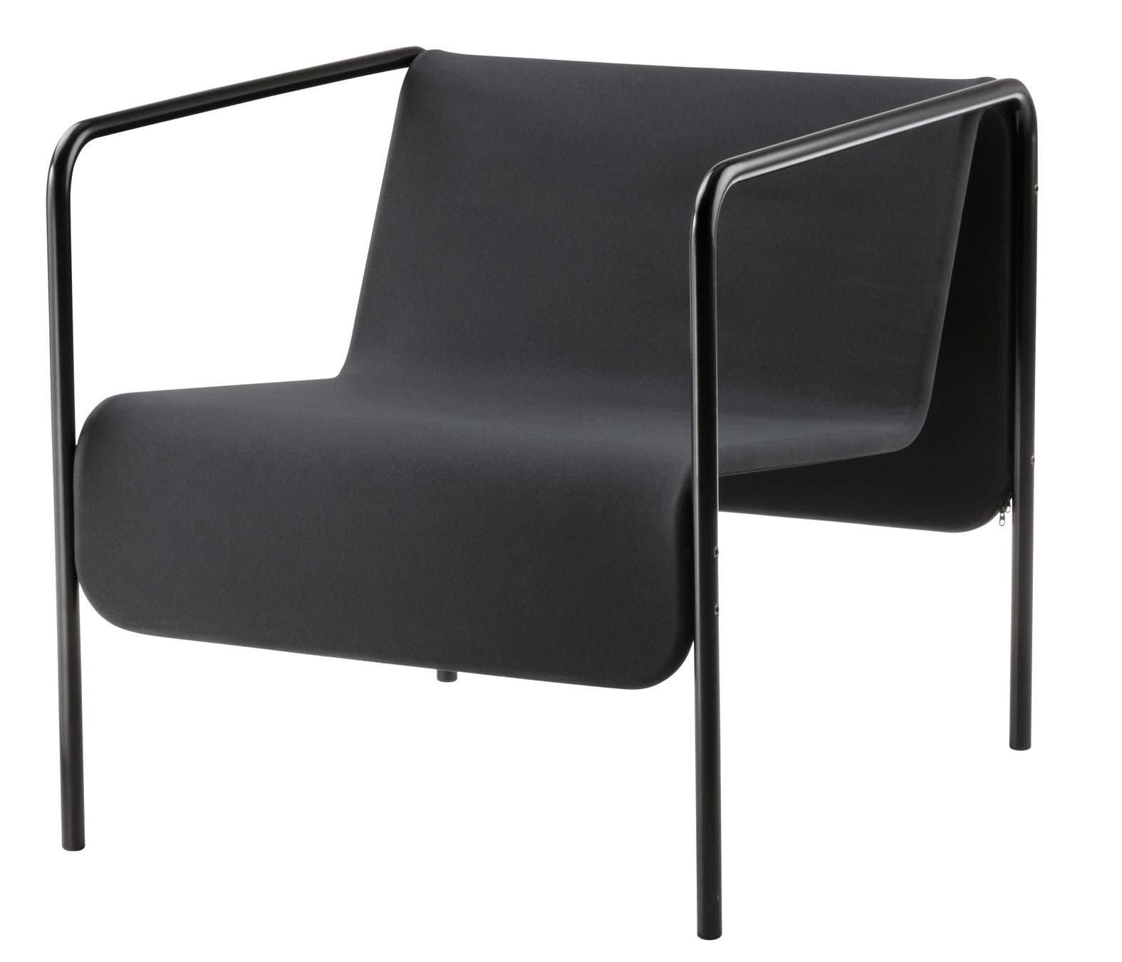すっきりしたラインのオールブラックのデザインで、お手持ちの家具と合わせやすいパーソナルチェア。シートの後ろと下のストラップを使って、布地の張り具合を簡単に調節できます。