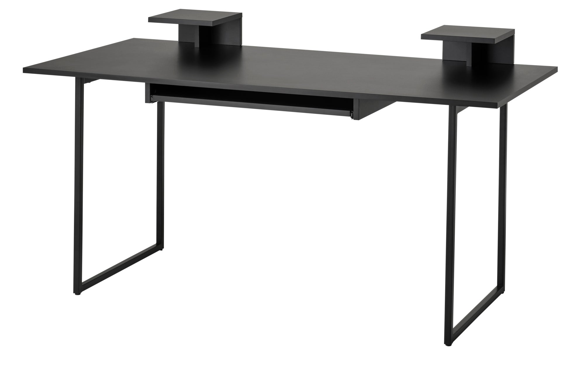 音楽をつくるのが大好きな人に理想的なデスク。スピーカーシェルフを2個取り付けられるので、音楽をつくるとき簡単に「完璧なトライアングル」をつくれます。キーボードとマウス用の引き出し式シェルフが付いているので、デスク上のスペースを広く使えます。キーボードとマウス用の引き出し式シェルフには、抜け落ち防止のストッパーが付いています。