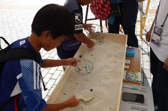 ▲ホームゲーム開催時に子どもたち対象にマイクロプラスチックの回収疑似体験ができるSDGsブースを出展
