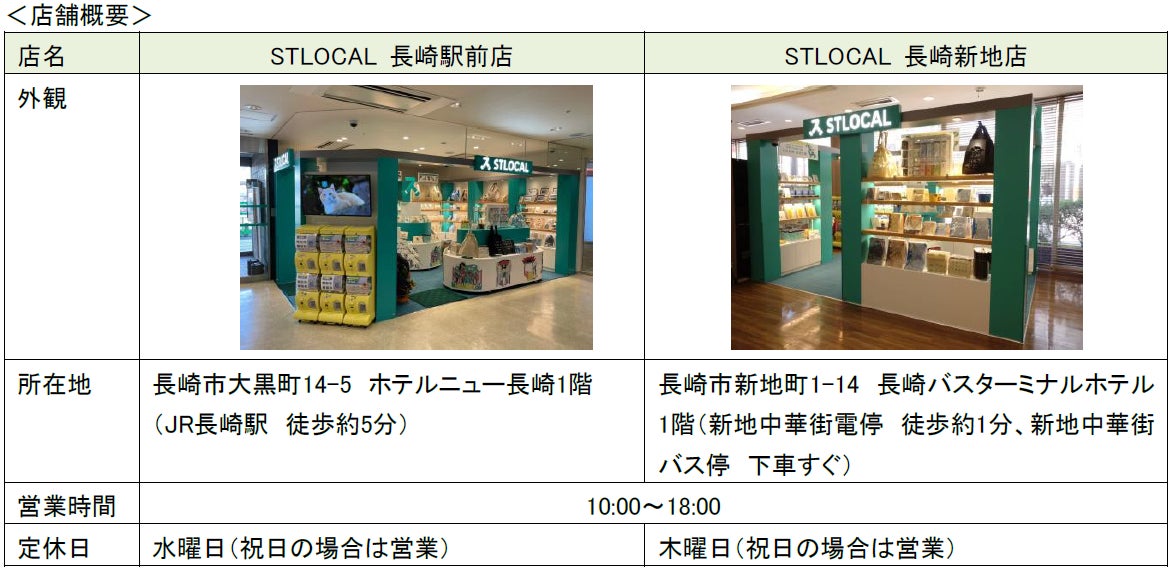 「STLOCAL」ショップは、2023年3月1日に、観光客が旅の前と旅の後にお立ち寄りいただけるよう、長崎駅前と空港バスが発着する交通拠点(長崎駅前店、長崎新地店)にオープンしました。