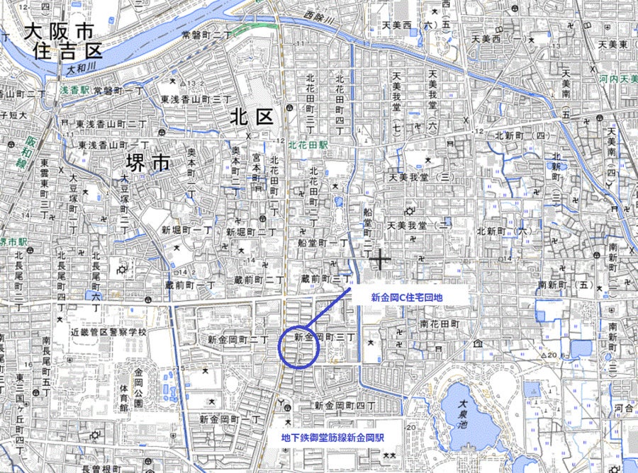 大阪府堺市の新金岡駅エリアは、昭和40年代を中心とした住宅開発により、多くの公的賃貸住宅や分譲住宅団地等が建てられました。街びらきから50年超を経て、新金岡駅周辺は、堺市都市計画マスタープランにおいては、地下鉄御堂筋線により大阪市内と接続する高い利便性を活かし、居住機能に加え、商業、子育て、医療、福祉、交流等の機能を誘導し、緑と利便性を活かした定住魅力のある拠点の形成を図ることとして位置づけられています。