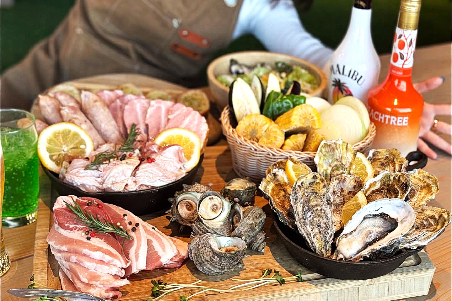 【東京・お台場でグランピング?!】全天候型室内BBQのウッドデザインパークの冬は・・・期間&数量限定のカキ・サザエの贅沢プランで決まりだ!