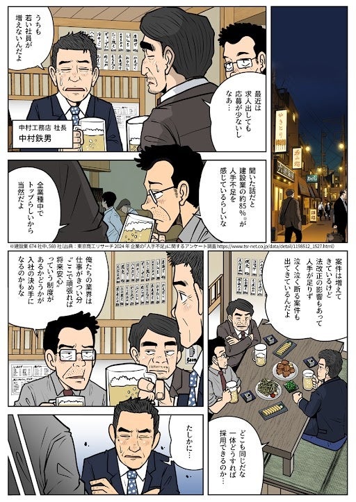 建設業の経営者・人事担当者向け 従業員の将来をサポートするお金の福利厚生「はぐくみ企業年金」とは?離職抑制と採用力強化に繋がる事例をマンガで公開