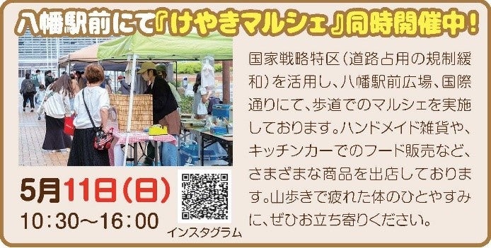 皿倉山健康ウオーク同時開催イベント「けやきマルシェ」をJR八幡駅前で開催します。