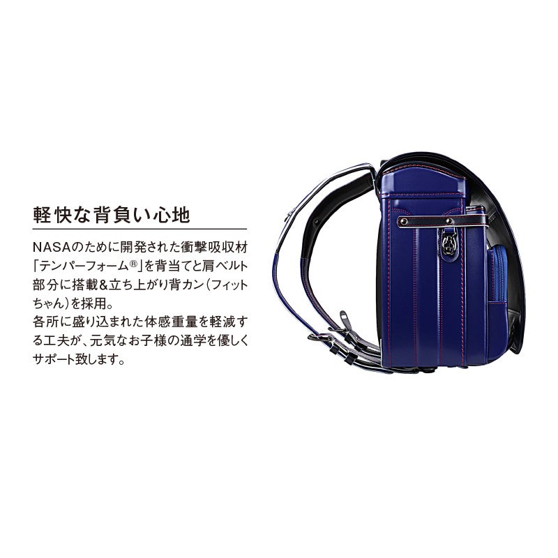 肩ベルトと背当て部分に地球NASAランドセル®の特徴である「テンパーフォーム®」を搭載することで、お子様の体にランドセルがフィットします。肌あたりがよく、吸湿性・速乾性にも優れ快適に背負っていただけます。