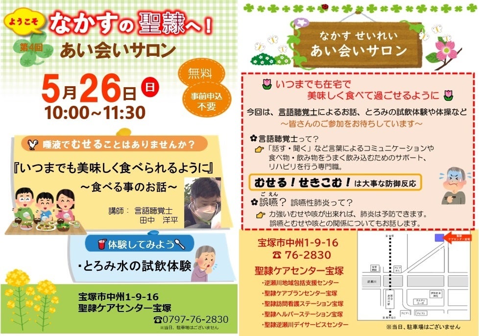 聖隷ケアセンター宝塚にて2024年5月26日「第4回あい会いサロン」を開催します!
