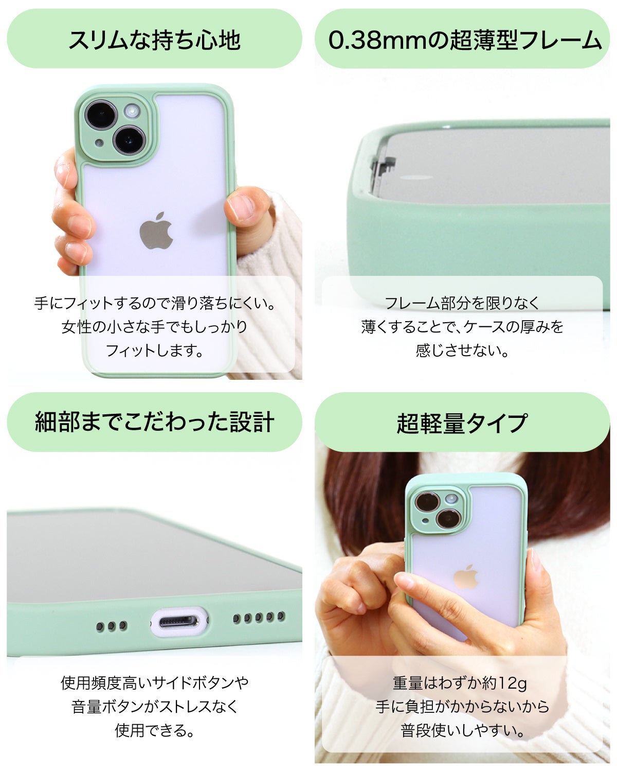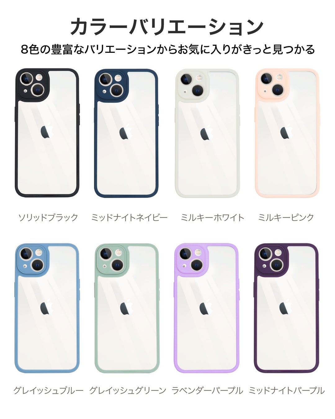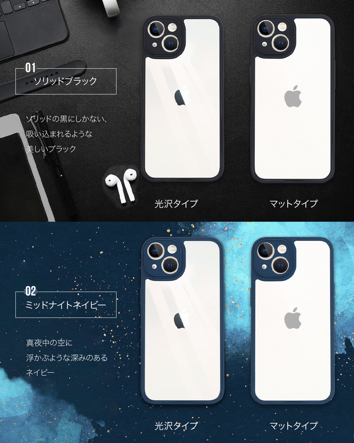 iPhone14 / iPhone13 / iPhone12 シリーズに対応。背面の透明部分は「光沢」と「マット」から選べ、カラバリは8色展開です。◎楽天スーパーSALE限定特別価格で販売