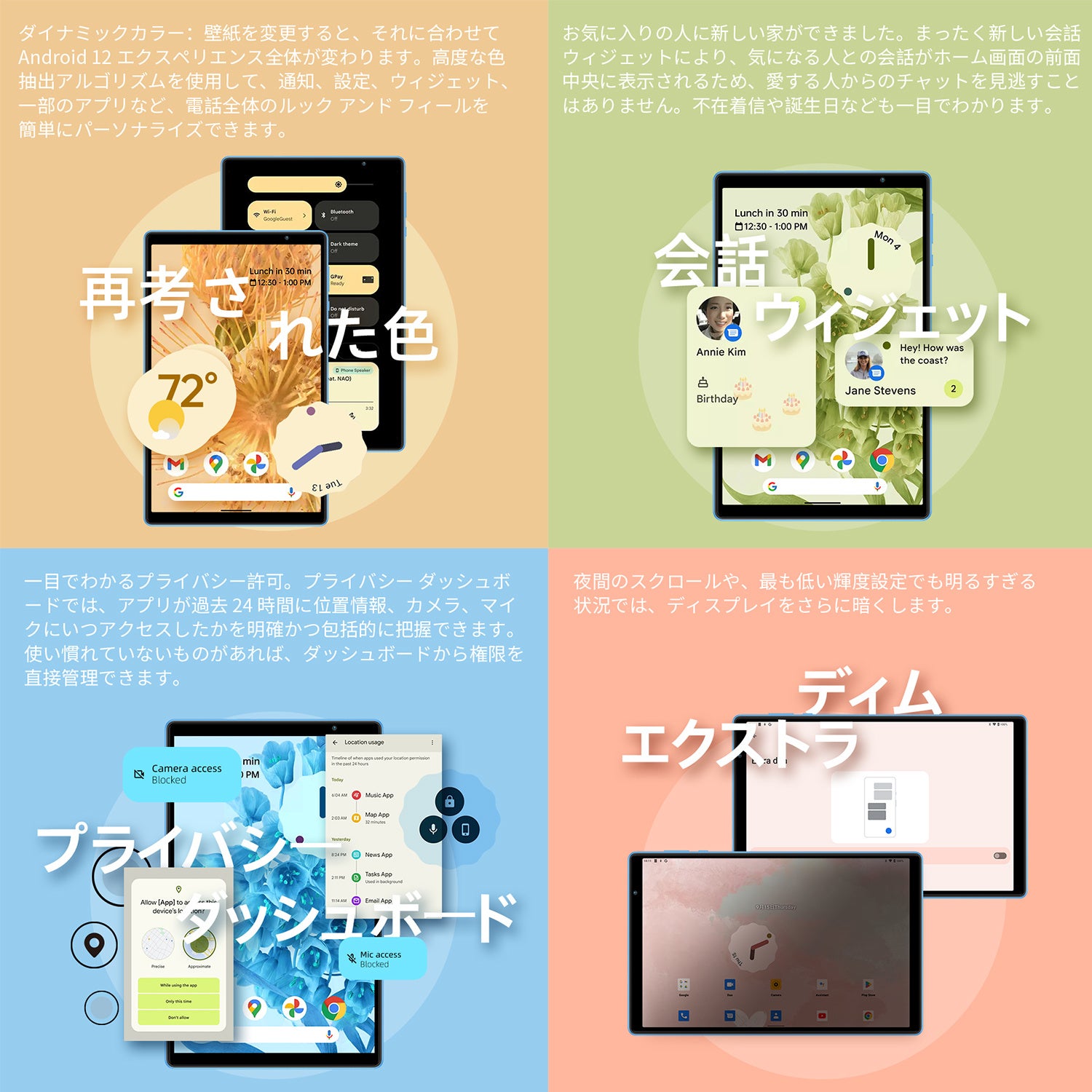 Android 12は、よりパーソナルで安全、かつ簡単なユーザー体験を提供します。 直感的なUIデザインと最適化されたシステムロジックにより、タブレットの動作がこれまで以上にスムーズになります。