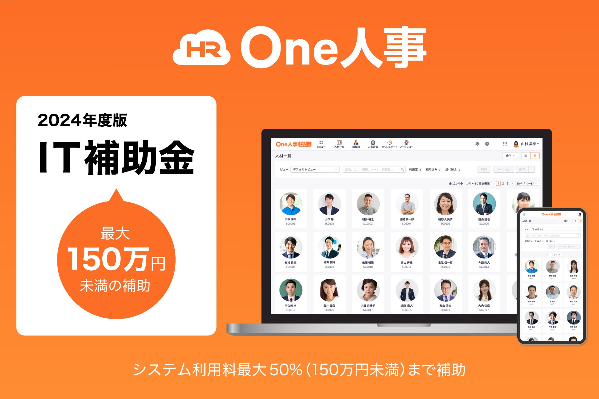 One人事株式会社(本社:東京都品川区、代表取締役社長:唐沢雄三郎)は、「IT導入補助金 2024」においてIT支援事業者として採択され、補助対象ITツールに、人事DXシステム「One人事」が認定されたことをお知らせします。