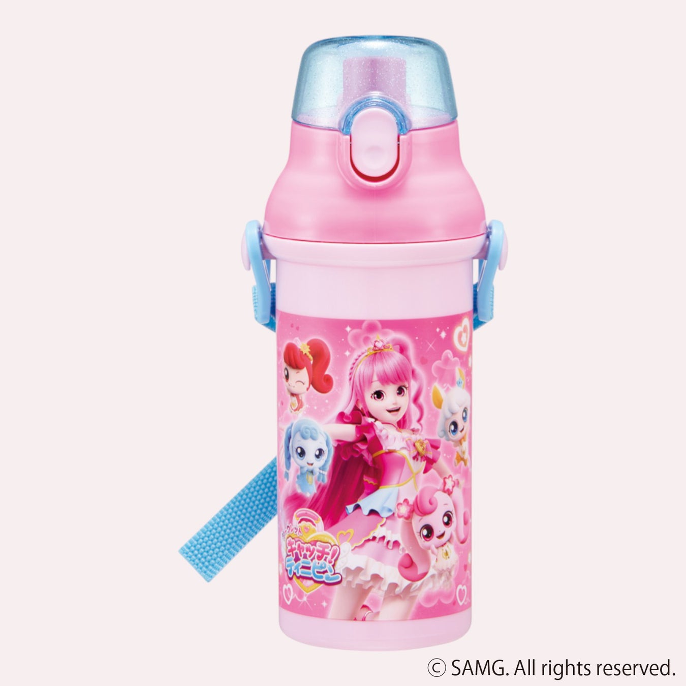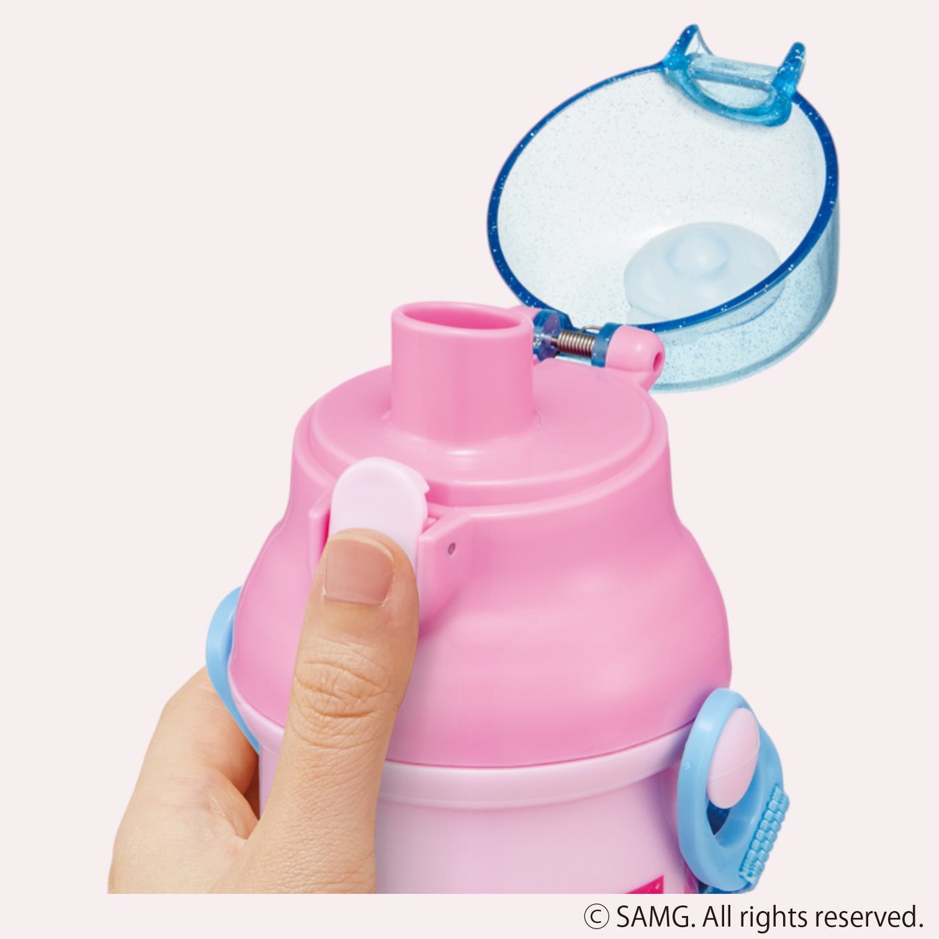 ボタンを押すだけで簡単にフタが開く、直飲みタイプの水筒です。軽くて持ち運びやすいプラスチック製で、お子様のお出かけにぴったりです。