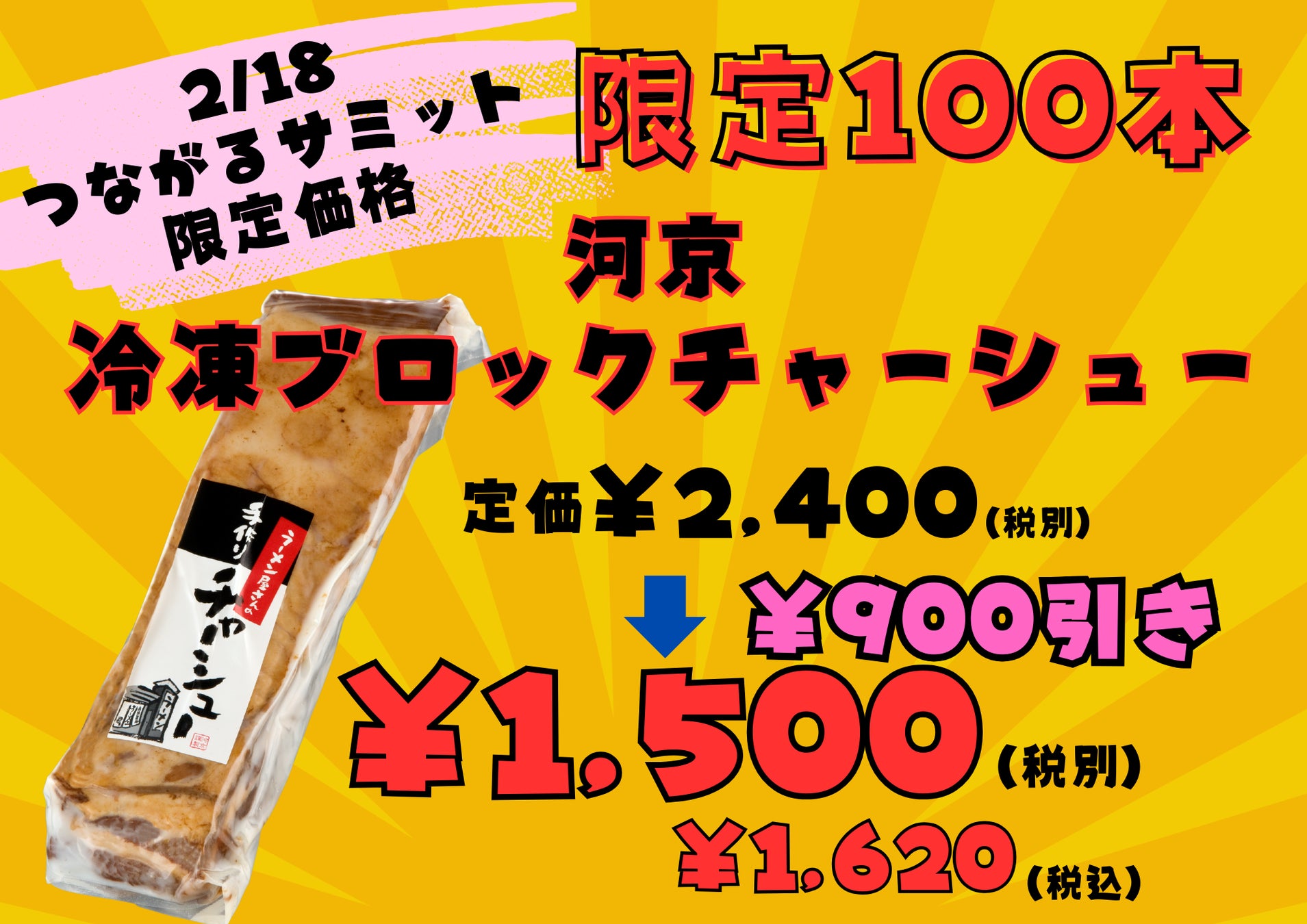 河京自慢のブロックチャーシューを2/18限りの特別価格で数量限定販売!