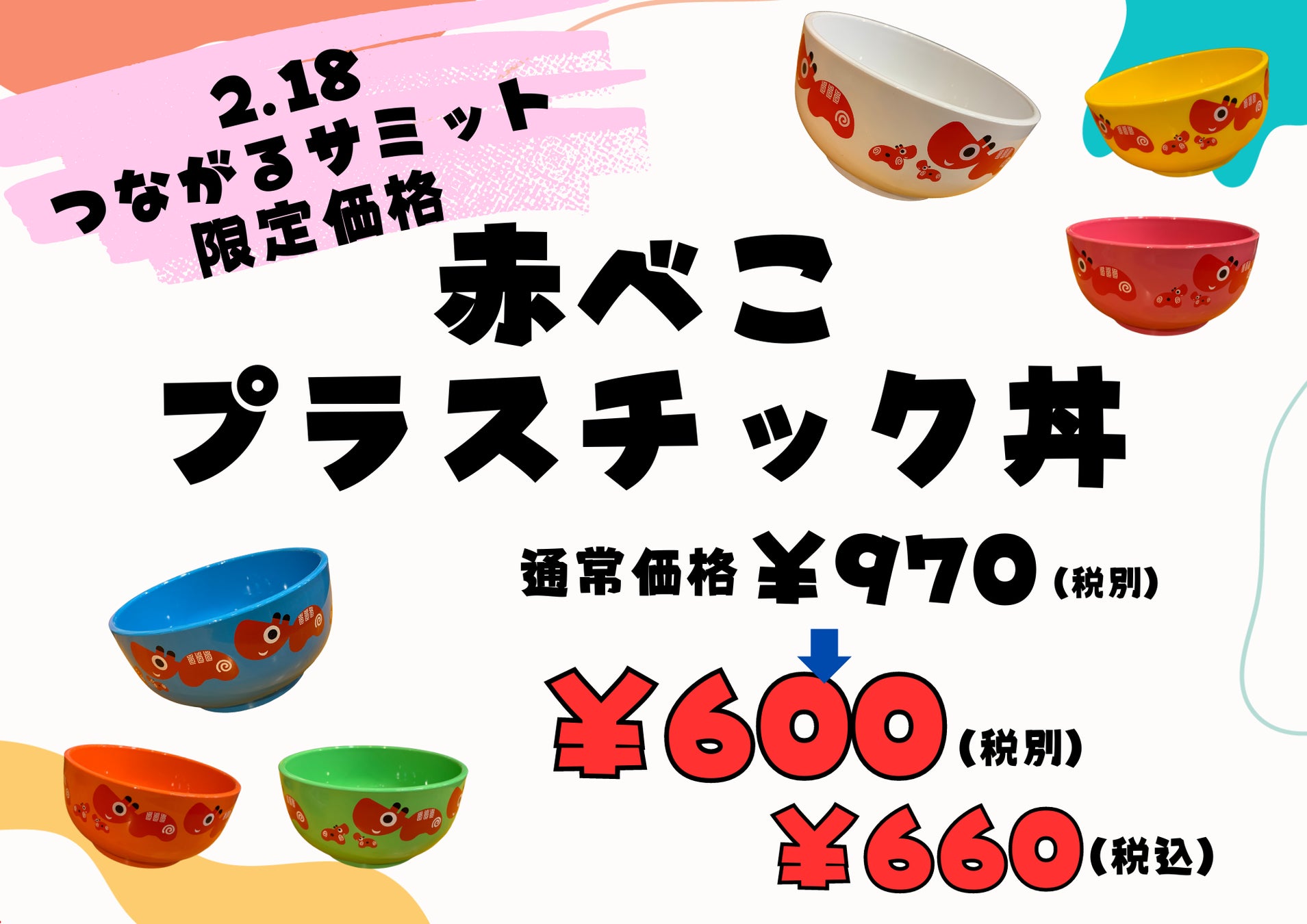 カラフルで赤べこの模様がかわいいプラスチック丼を特別価格で販売!