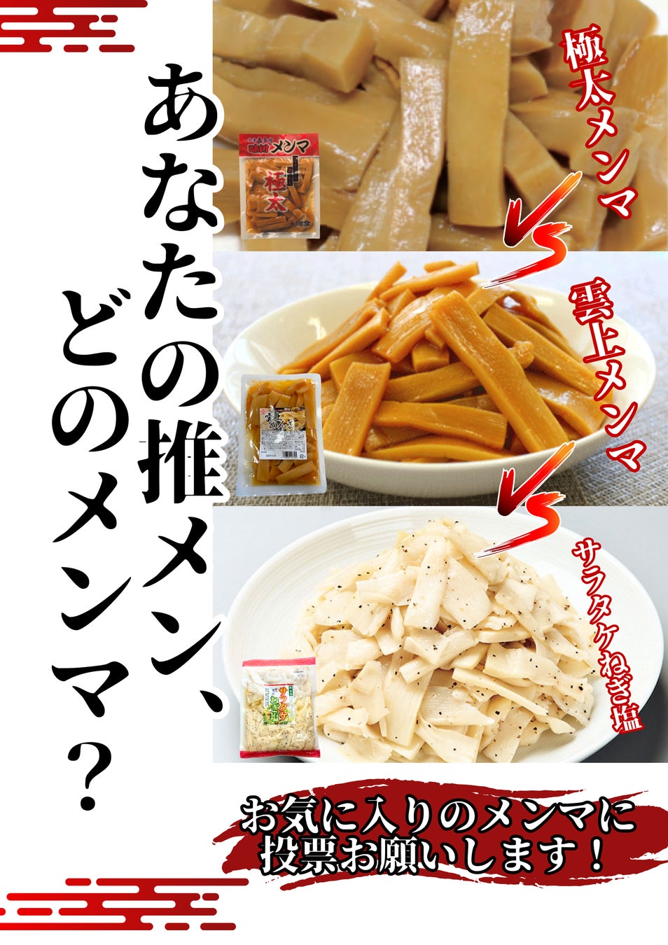 極太メンマ・雲上メンマ・サラタケねぎ塩の試食投票対決!