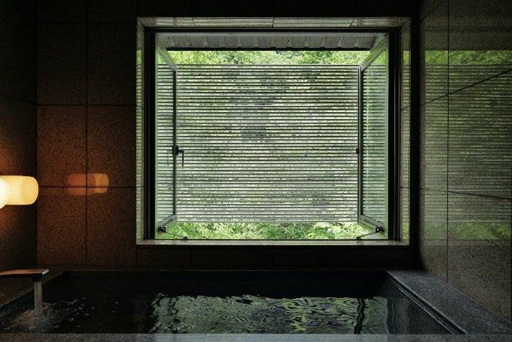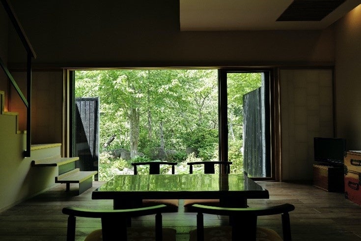 温泉は、ナトリウム・カルシウム塩化物泉で、筋肉痛や神経痛、疲労回復などへの効果が期待されており、里山の自然に囲まれた静寂な環境で心身ともにリフレッシュできます。バーやカフェでの飲食、客室内のドリンクを含め、滞在中のサービスはすべて料金に含まれるオールインクルーシブ形式を採用しています。