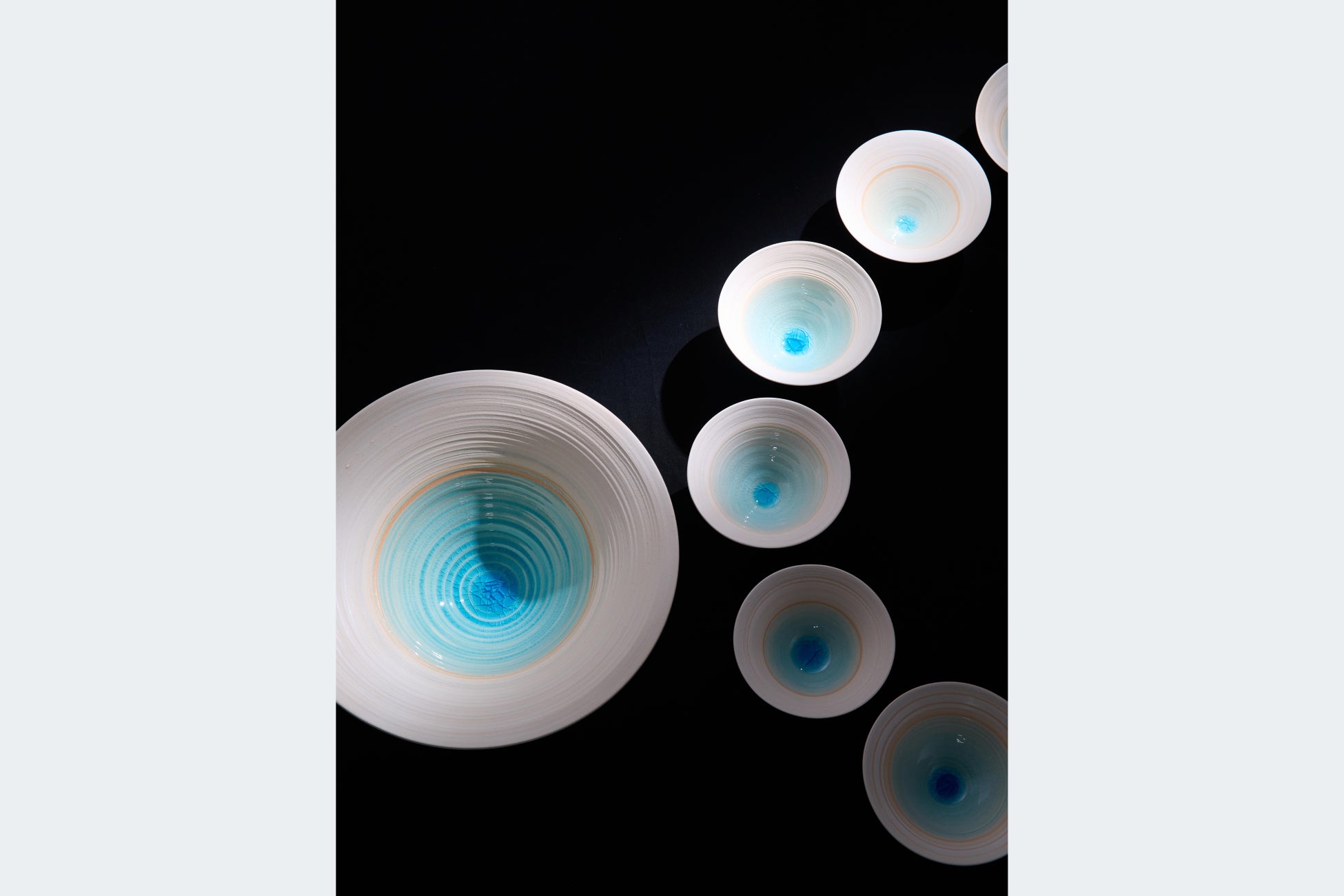 水の情景を表現した陶芸作品を国内外で発表している畠山佳史。NHK朝ドラ「スカーレット」の陶芸指導と最終章のストーリーの要として登場した「水が生きてる皿」の制作提供を行った陶芸家です。今回の畠山圭史陶芸展は、ワークショップや「計り売り展示」など気軽に参加できるユニークな体験型展覧会です。どうぞお楽しみください。