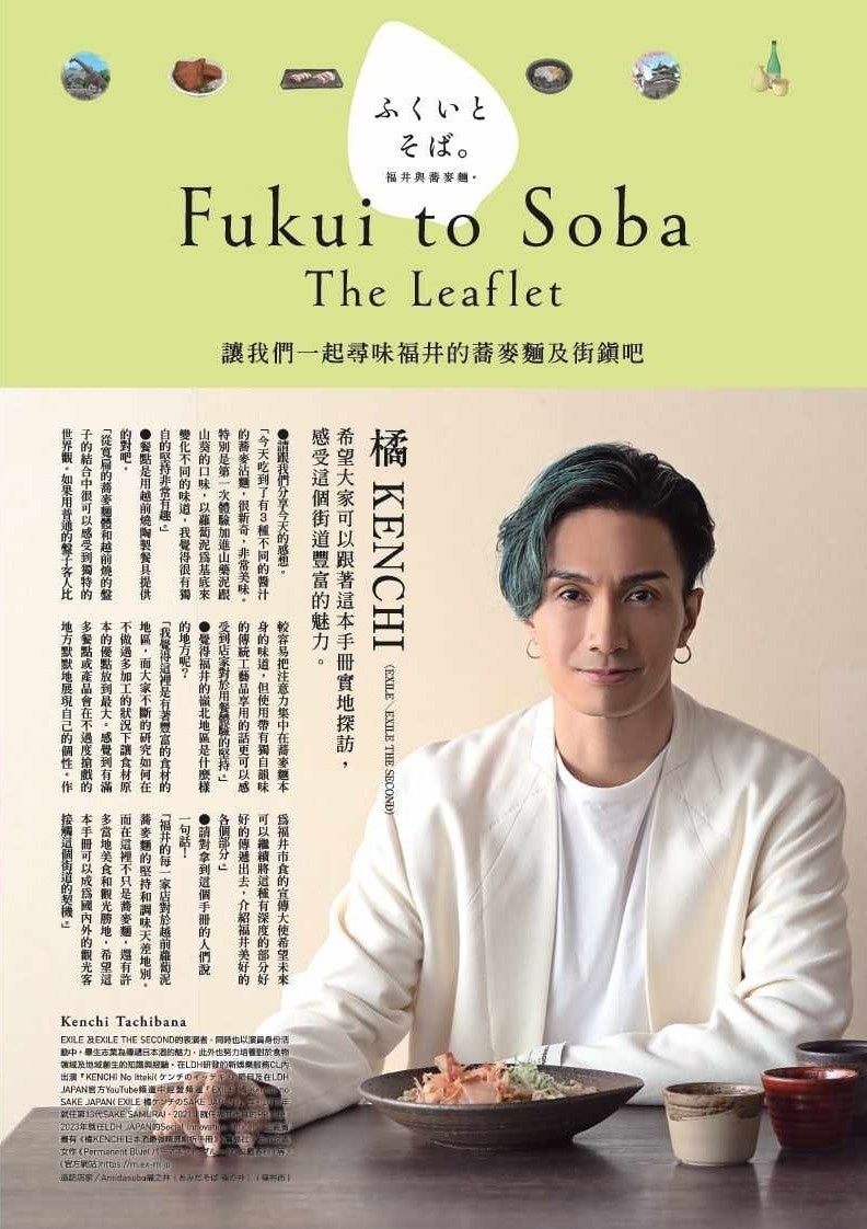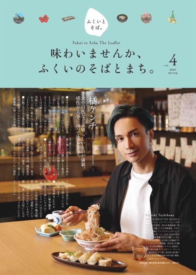 橘ケンチ氏がそば打ちに挑戦するほか、『ふくいとそば。The Booklet』を手に県内のそば店を訪れ、そばと地酒を愉しむ動画をLDH JAPAN公式YouTubeチャンネルで配信。