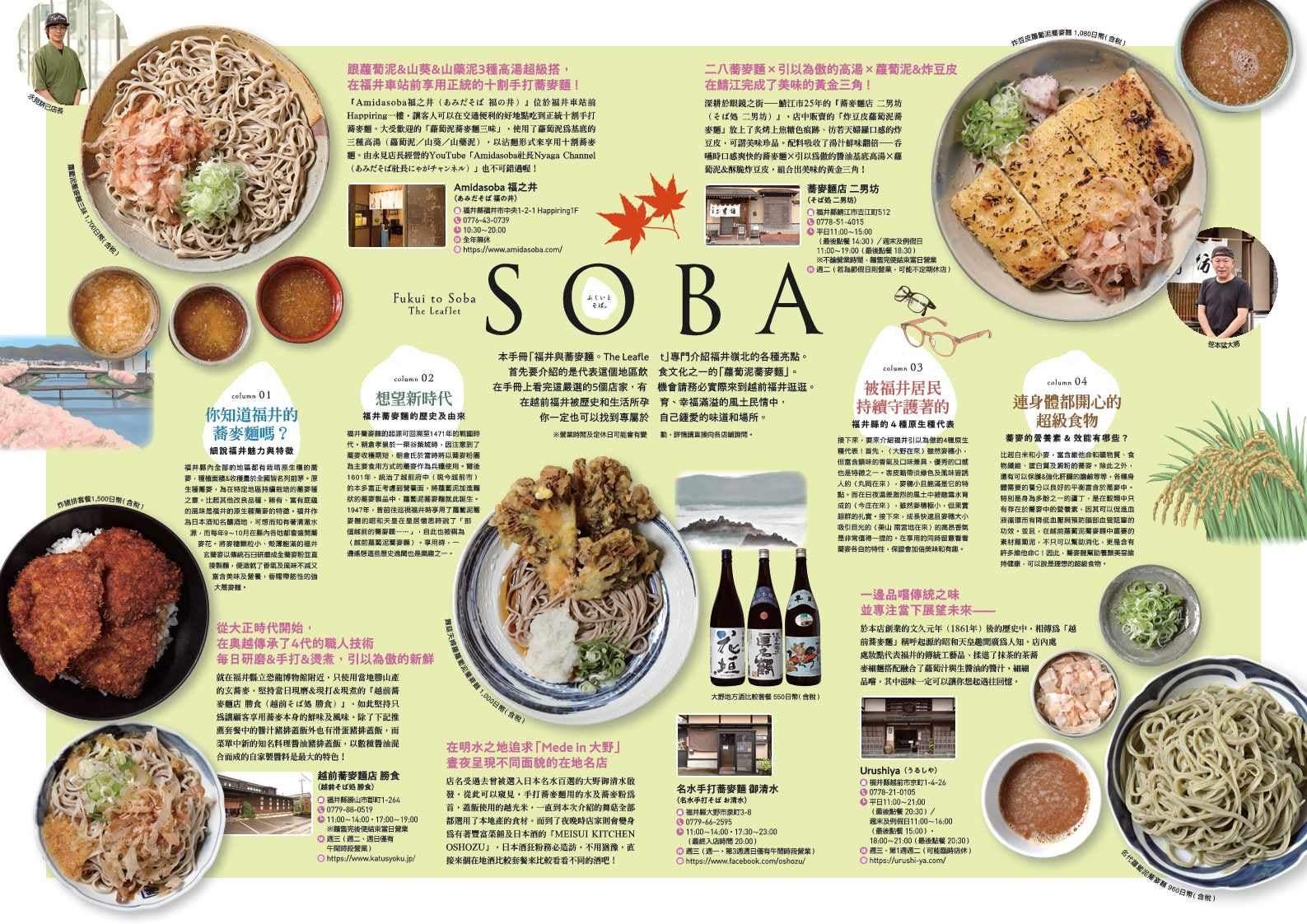 福井のそば文化や観光地などを繁体字で紹介したリーフレット。