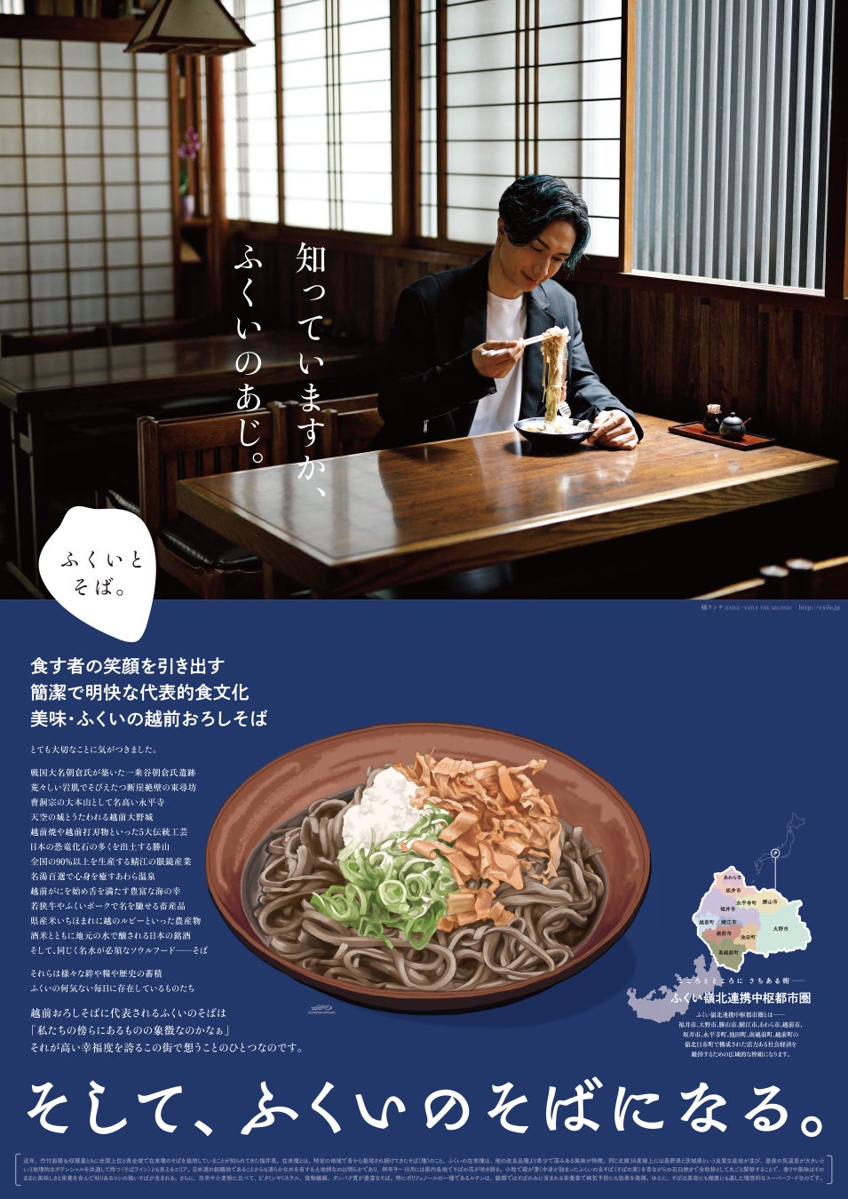 【福井県福井市】福井市食のPR大使橘ケンチ氏(EXILE/EXILE THE SECOND)登場! 在来種そばPRポスター『ふくいとそば。The Poster』第3弾を制作しました