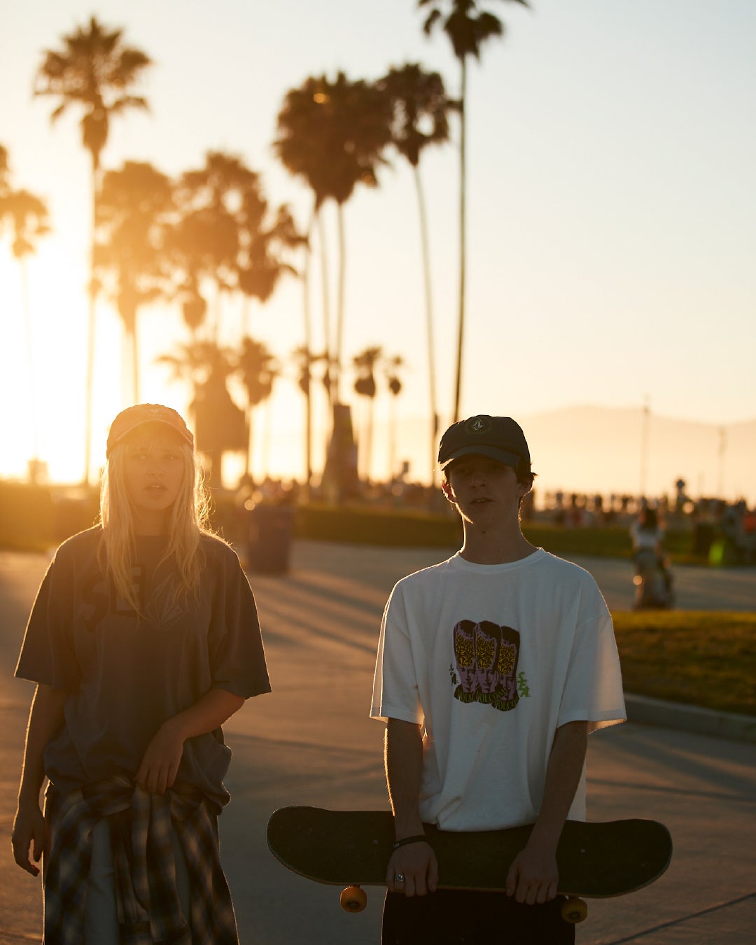 VOLCOMの長い歴史の中で培われたサーフ、スケート、スノーの魅力的なカルチャーが詰まったこの新コレクションは、VOLCOMのアイコンロゴであるSTONEロゴをモチーフにしたグラフィックTシャツや、当時の切り抜きフォントでデザインされた商品がラインナップ、まさに自分が好きな事に情熱的でひたむきな人たちの為にむけたプロダクトとしてリリースされました。
