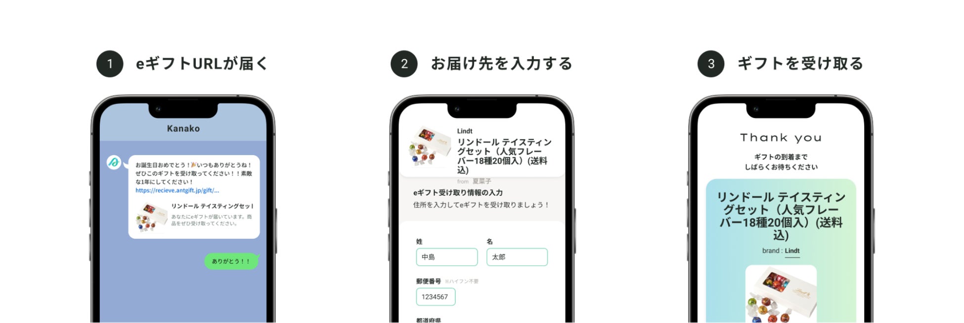 eギフトURLから住所を入力いただくだけで対象商品が届きます