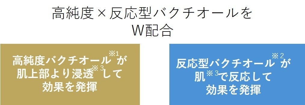 2種類のバクチオール※1・2を配合し、すみずみに※3届けることでマルチに働き、攻めのエイジングケア※4を叶えます。