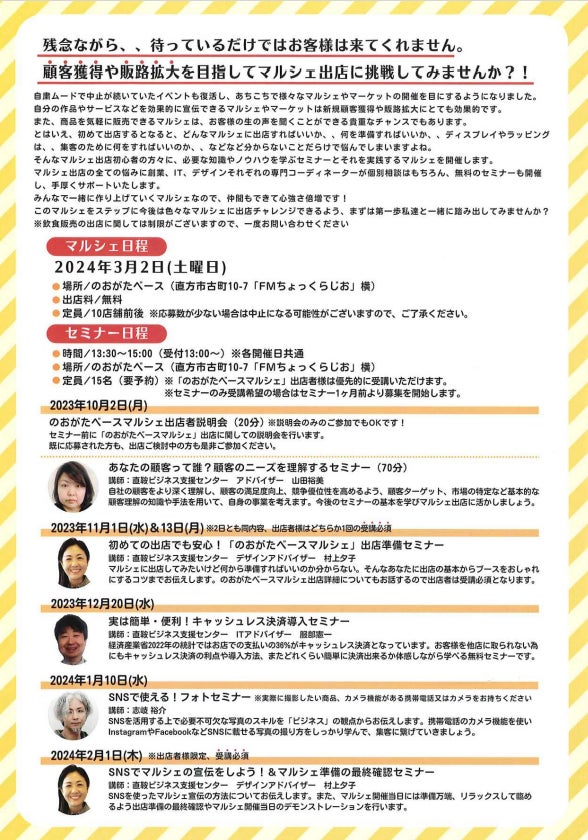 〇セミナー名:マルシェ出店準備セミナー<出店者受講必須>