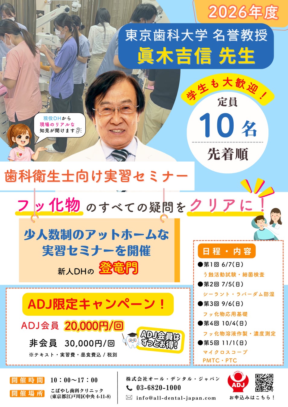 株式会社オール・デンタル・ジャパンは、歯科衛生士の臨床スキル向上と医院全体の予防レベル向上を目的とした「予防歯科・フッ化物実習セミナー(全5回)」を東京都江戸川区にて開催いたします。