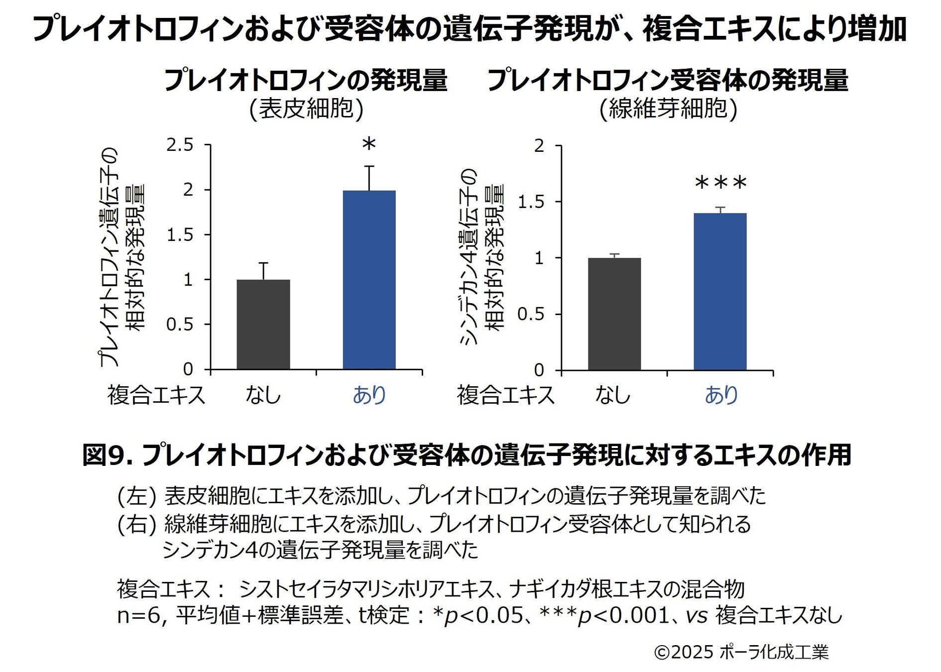 この仕組みを真皮全域に波及させると、真皮構造を根本的に作り替える方策につなげられる可能性があります(図2)。そこでプレイオトロフィンの働きを高めるエキスを探索し、シストセイラタマリシホリアエキスとナギイカダ根エキスの混合物にその効果を見出しました(補足資料5)。