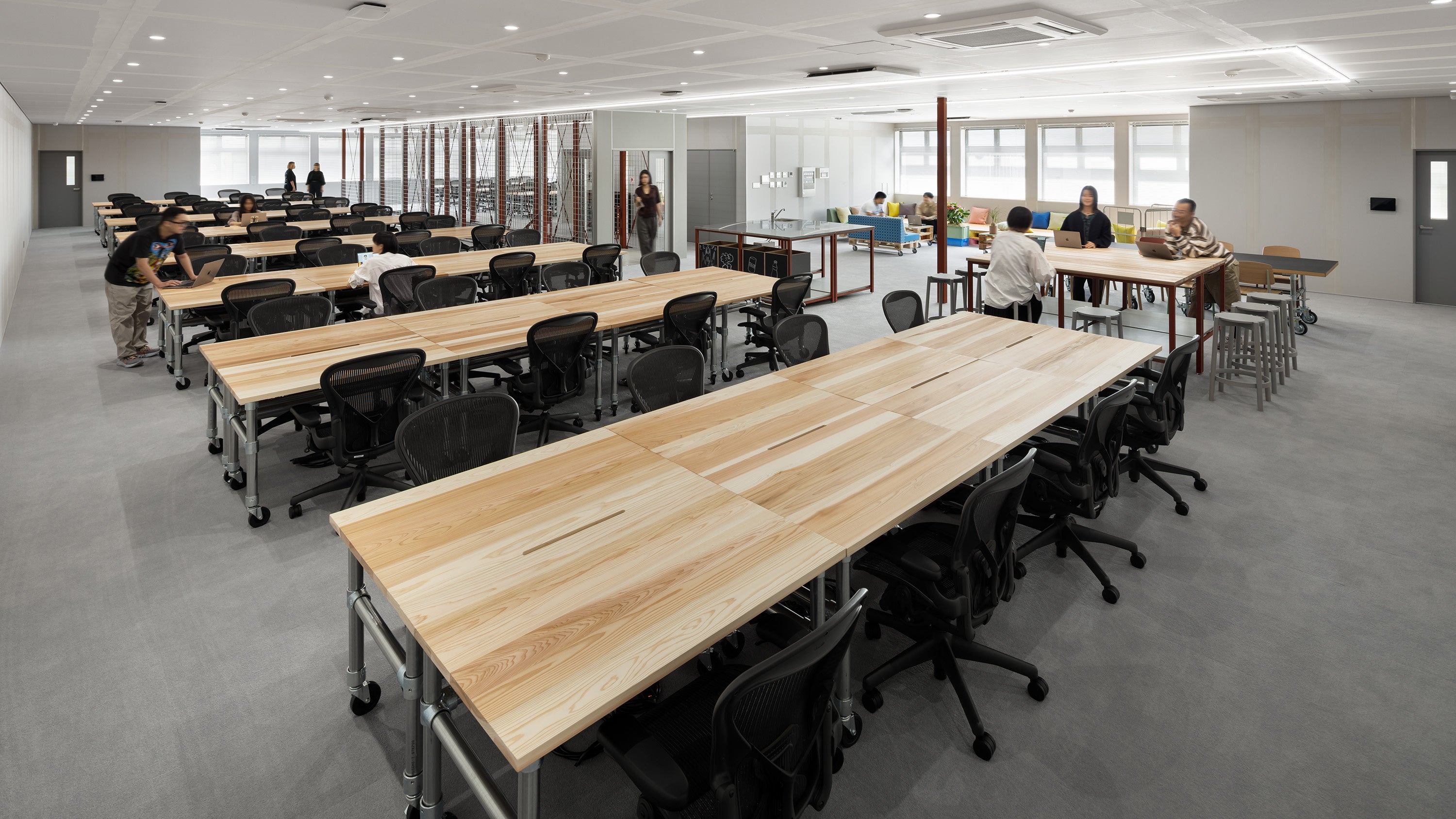 西千葉の本社屋向かいに位置するZOZOSTUDIOは「ZOZOらしさ」(※)を進化させるための新たな社屋です。素地や構造を活かしたシンプルな内装をベースに、レイアウト変更が自由にできる車輪付きのオフィス什器を採用しているほか、様々な用途で利用できる防音スタジオを完備するなど、スタッフがクリエイティビリティを発揮し、ZOZOSTUDIO全体を道具の様に "使いこなす”ことが出来るよう工夫した空間となっています。