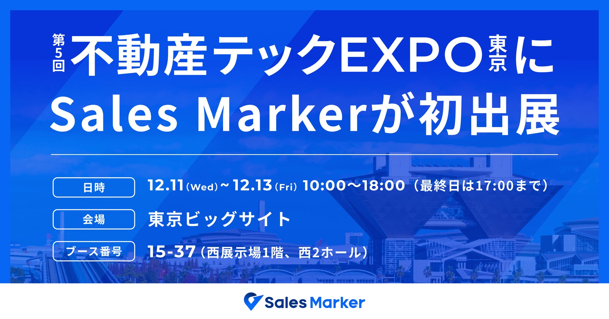 国内初※1のインテントセールスSaaS『Sales Marker(セールスマーカー)』を開発・提供する株式会社Sales Marker(本社:東京都港区、代表取締役:小笠原羽恭、以下当社)は、2024年12月11日(水)~13日(金)に東京ビッグサイトで開催される「第5回 不動産テックEXPO」に初めて出展いたします。本展示会は、不動産業界における最新テクノロジーやソリューションが一堂に会する国内最大級の展示会です。