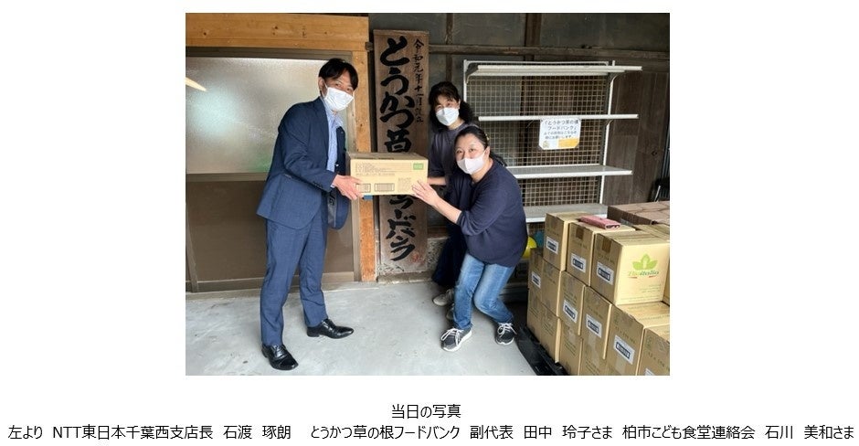 東日本電信電話株式会社 千葉西支店 (支店長:石渡 琢朗、以下「NTT東日本」 )は、弊社が備蓄している災害用食料品を、福祉施設・団体等、支援を必要としているところに有効利用していただくために「フードバンク」に贈呈いたしました。