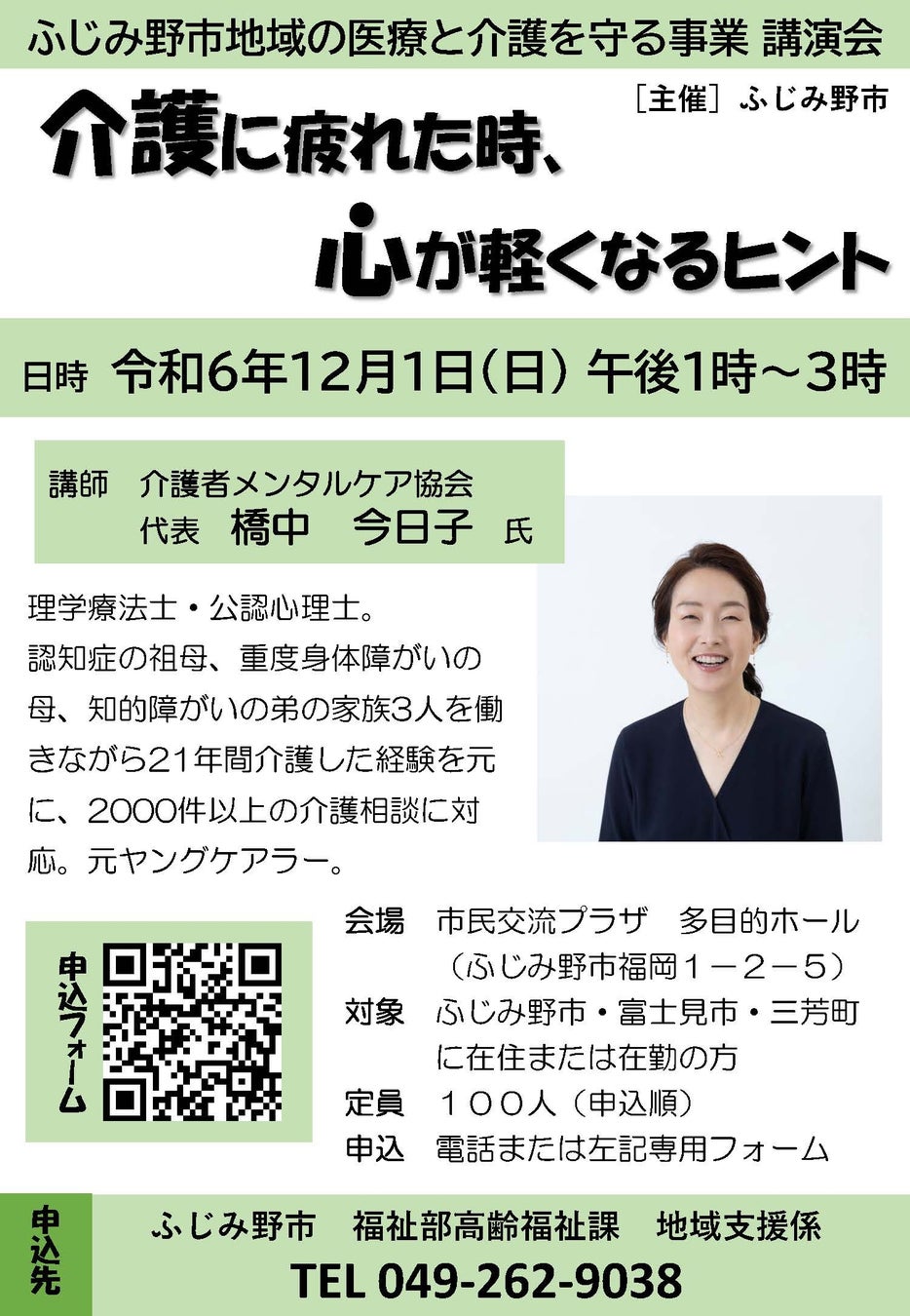 今まさに家族の介護をされている人、自分の介護について考え始めた人、家族の介護について考え始めた人、そんな皆さんにおすすめの講演会です。