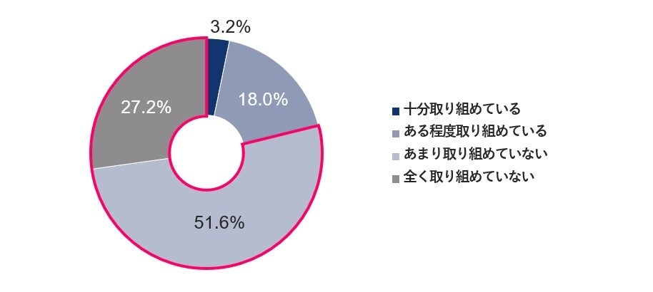 本質問では「あまり取り組めていない」、「全く取り組めていない」の回答が多く、併せて78.8%の経営者があまり取り組めていない状況でした。