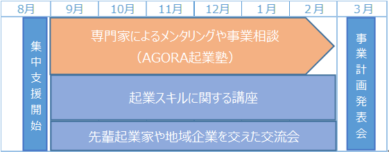 支援内容:・専門家(インキュベーションマネージャー等)によるメンタリングや事業相談